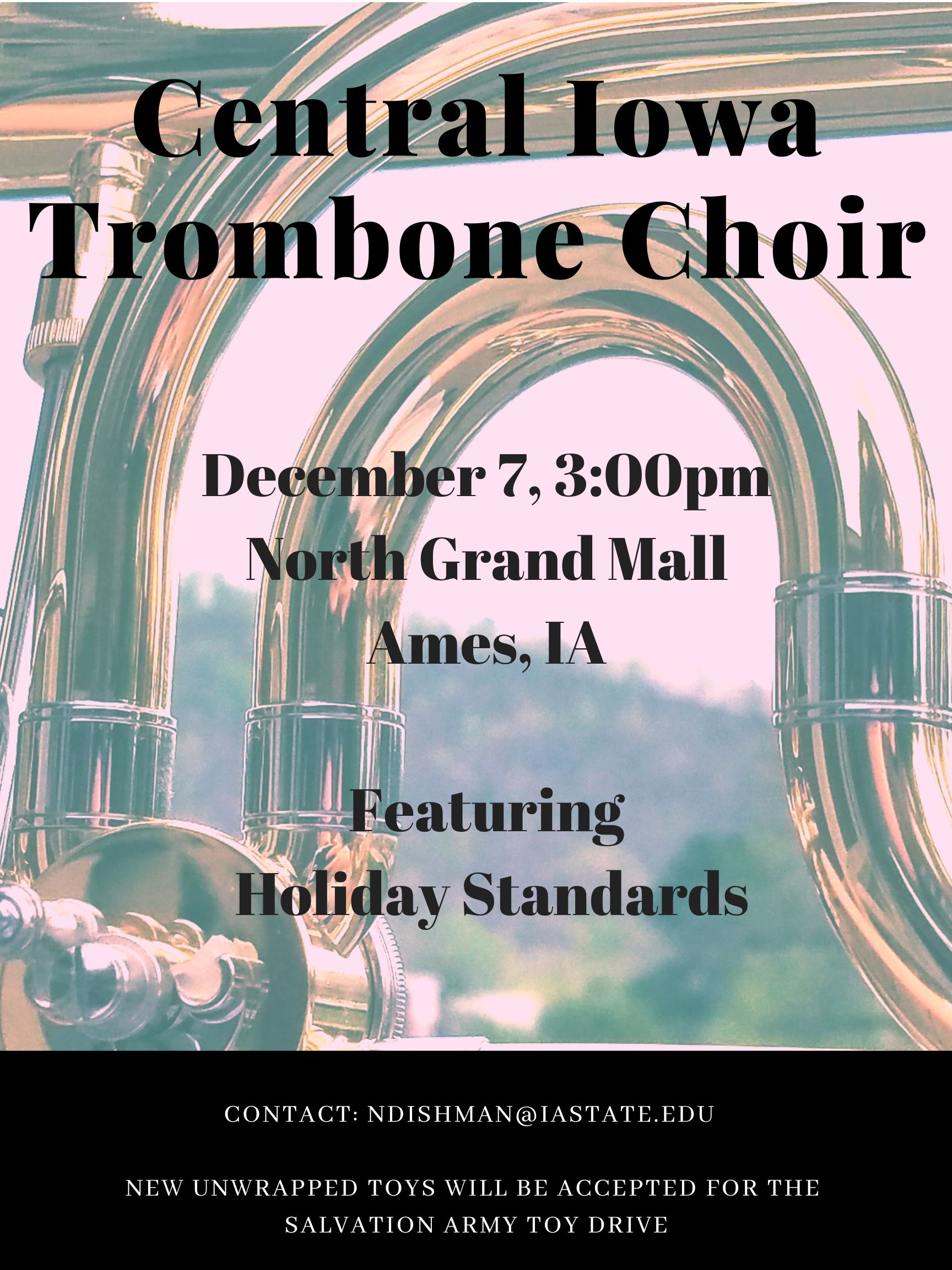 Join the Central Iowa Trombone Choir as they perform sounds of the holidays at North Grand Mall.